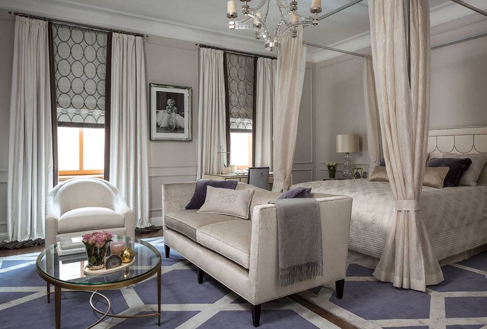 Интерьер совмещенной спальни чаще всего выполняется в стиле прованс, кантри, этно-стиль, арт-деко, классика, минимализм.