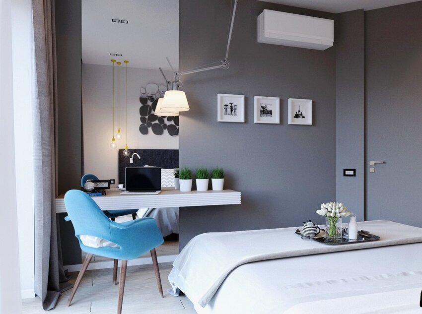 Создание спальни-гостиной — проект, требующий тщательного продумывания деталей, чтобы каждая из комнат выполняла свое функциональное назначение и смотрелась гармонично в концепции общего дизайна.