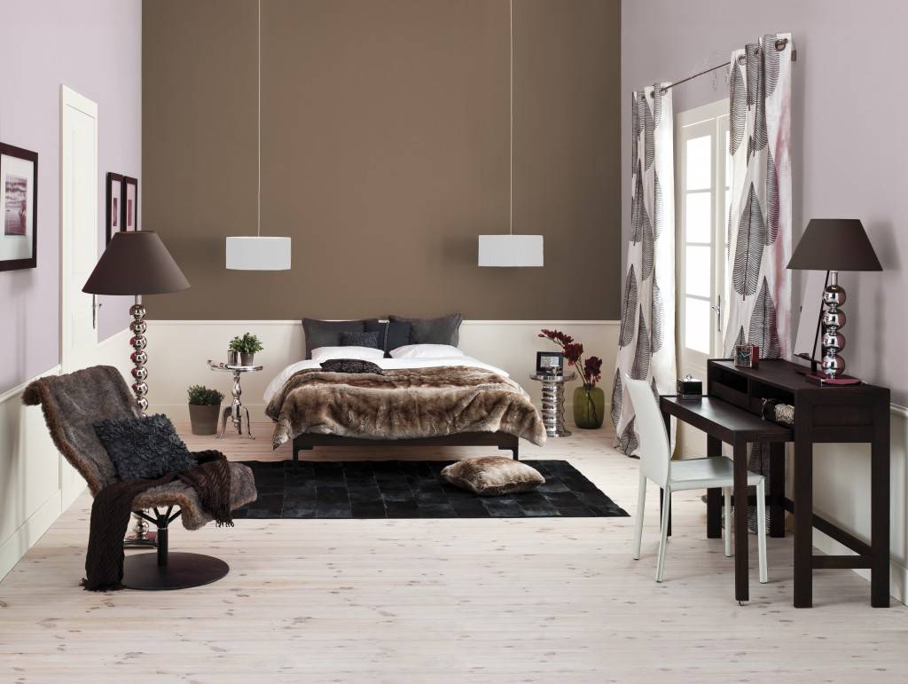 Для оформления гостиной лучше всего выбрать светлые или нейтральные оттенки (серый, песочный или бежевый), который сводят на нет в спальной комнате, выбирая их производную из неярких оттенков. К примеру, гостиную, выполненную в бежевом оттенке, отделяют ширмой, где скрывается спальня, оформленная в белых тонах. Интересным решением станет обратный переход от глубокого тона к менее насыщенному, например, спальня пепельной розы, перетекающая в светло-розовую гостиную.