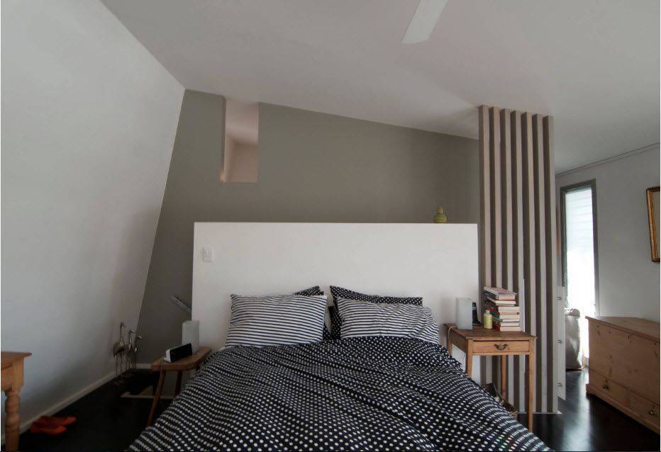 Именно в интерьере крохотной, крайне узкой спальни шириной 2,25 м бесспорно и ярко проявляется дизайнерский талант, смекалка и нестереотипное мышление.