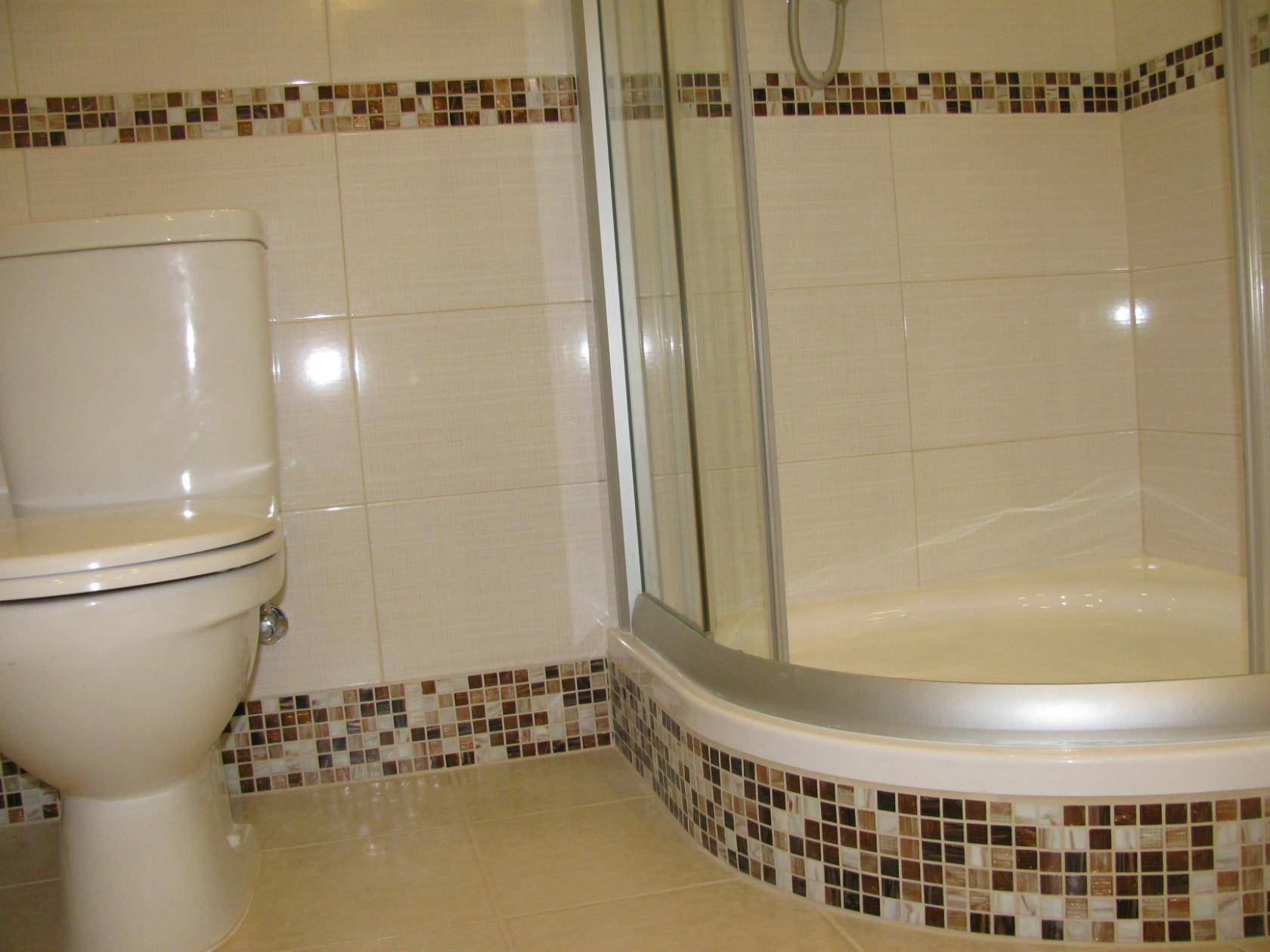 Самодельная душевая из плитки со стеклянными дверями
