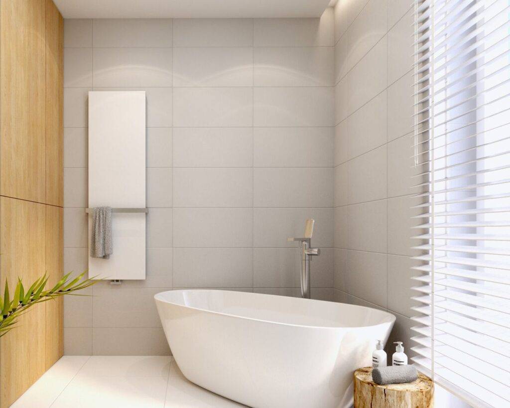 - В маленькой ванной плитку лучше выкладывать поперек, а не параллельно форме потолка.