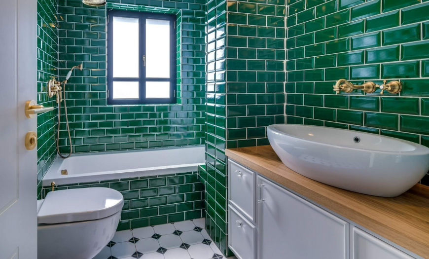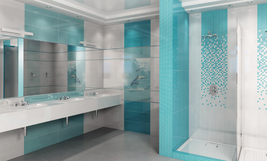 - на выбор цвета влияет характер освещения. К примеру, если оно недостаточно яркое, выбирать плитку цвета морской волны не стоит: стены покажутся покрытыми плесенью;