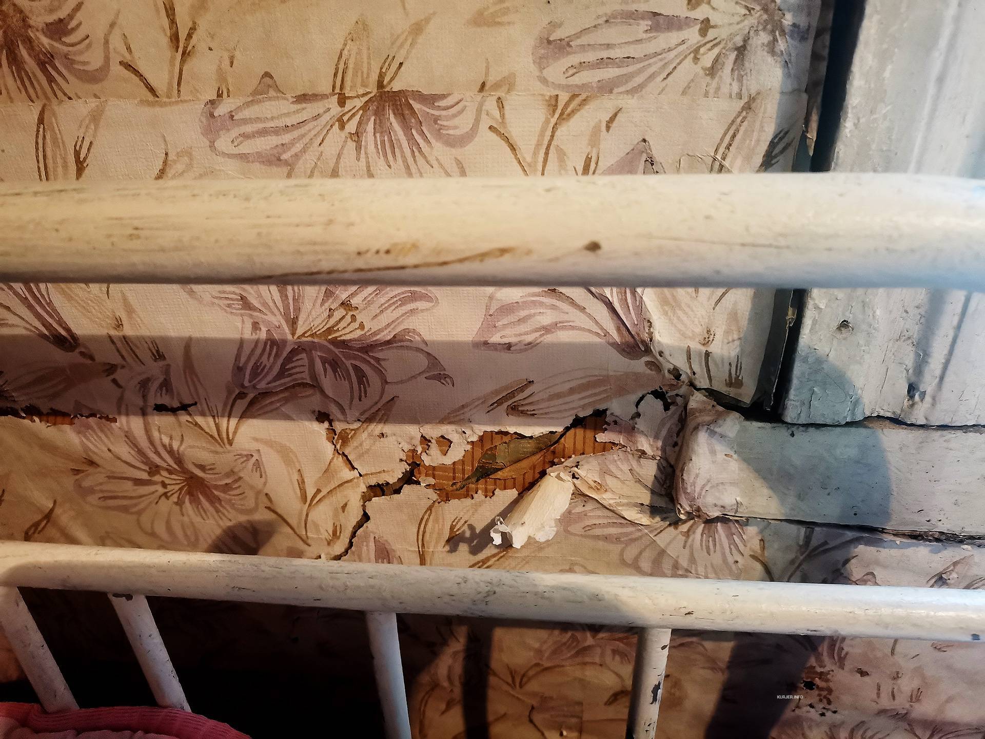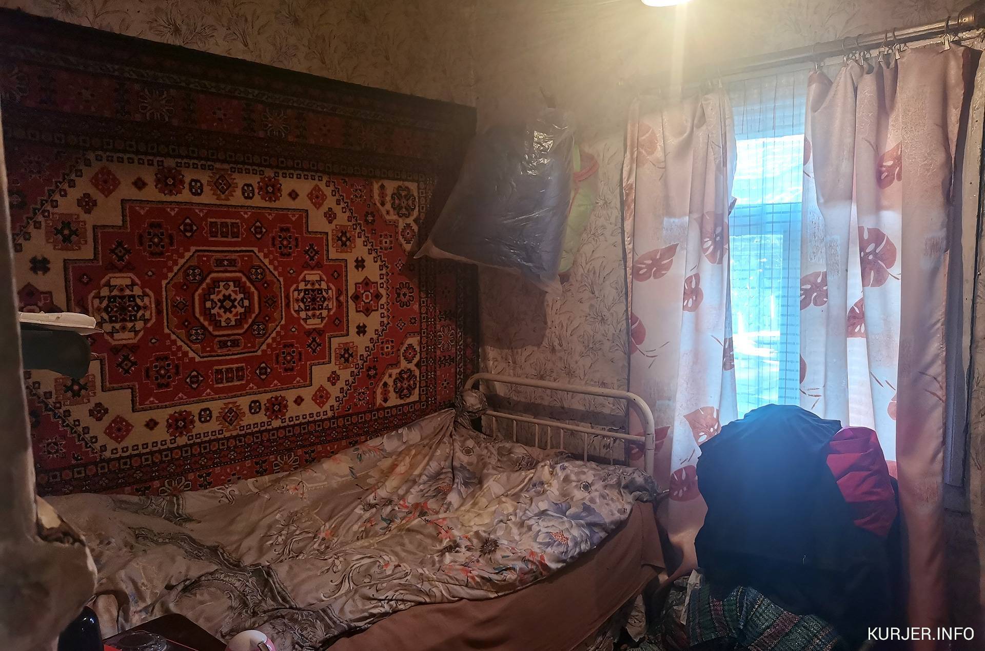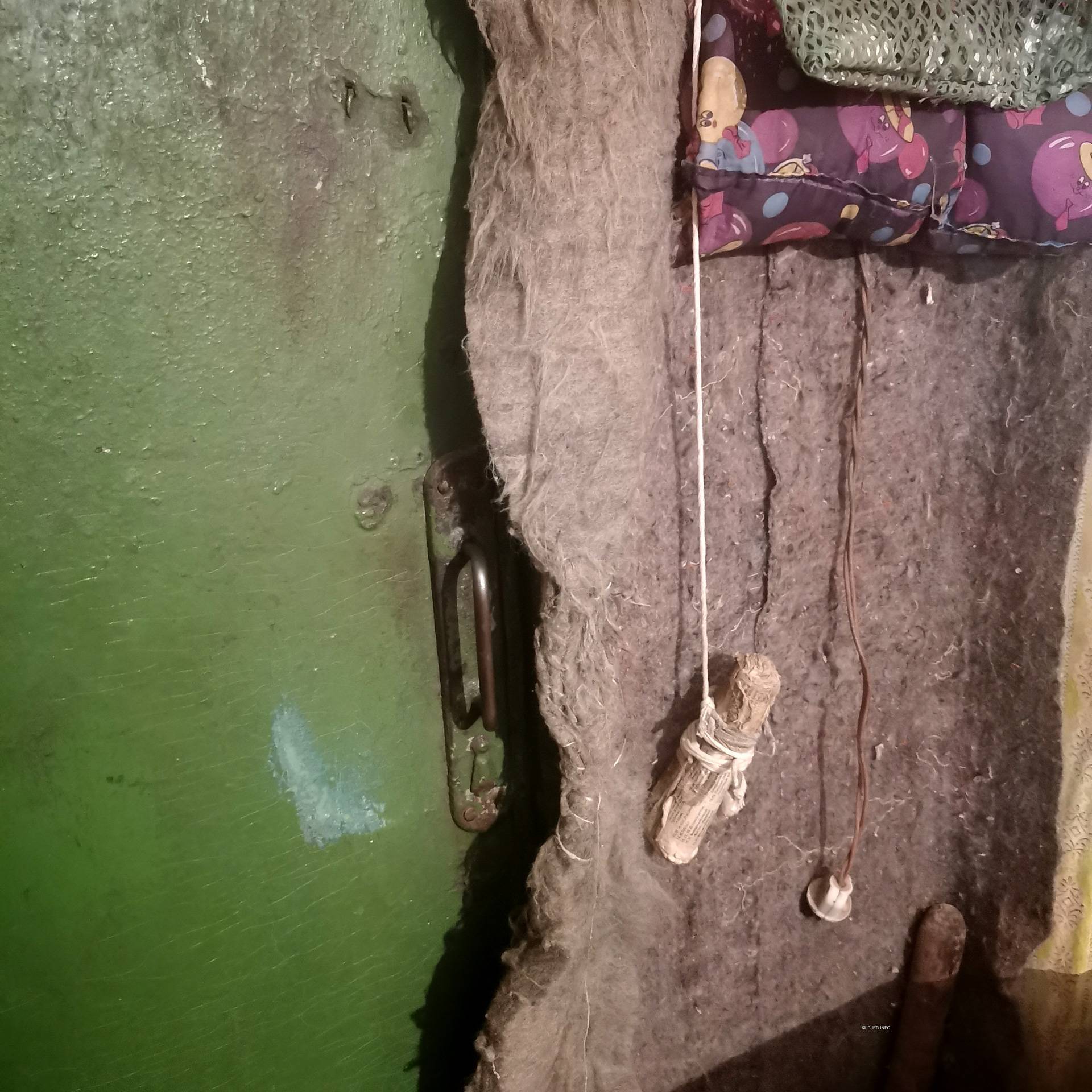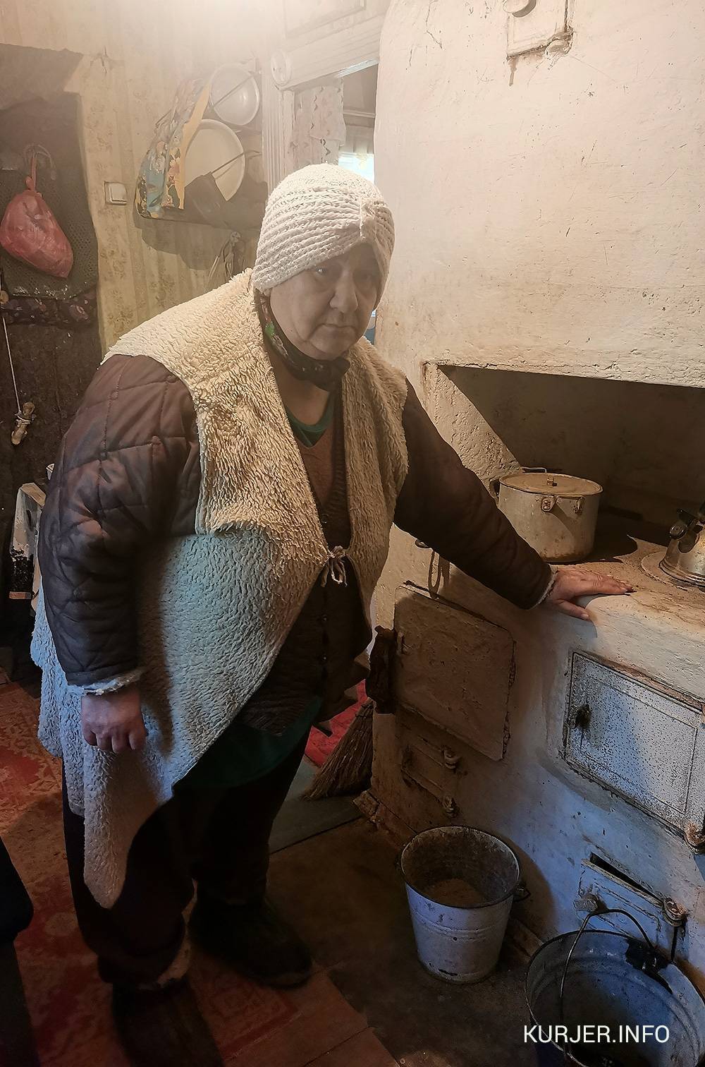 Стена возле входной двери тоже обита войлокомДомик стоит прямо на земле, поэтому доски пола прогнили. В холодное время года Нина Петровна постоянно поддерживает огонь в печи, встаёт даже ночью, чтобы подкинуть дров. «Иначе за час всё тепло исчезает через щели в полу, потолке и стенах. Вся жизнь и все силы уходят на печь», — говорит она.