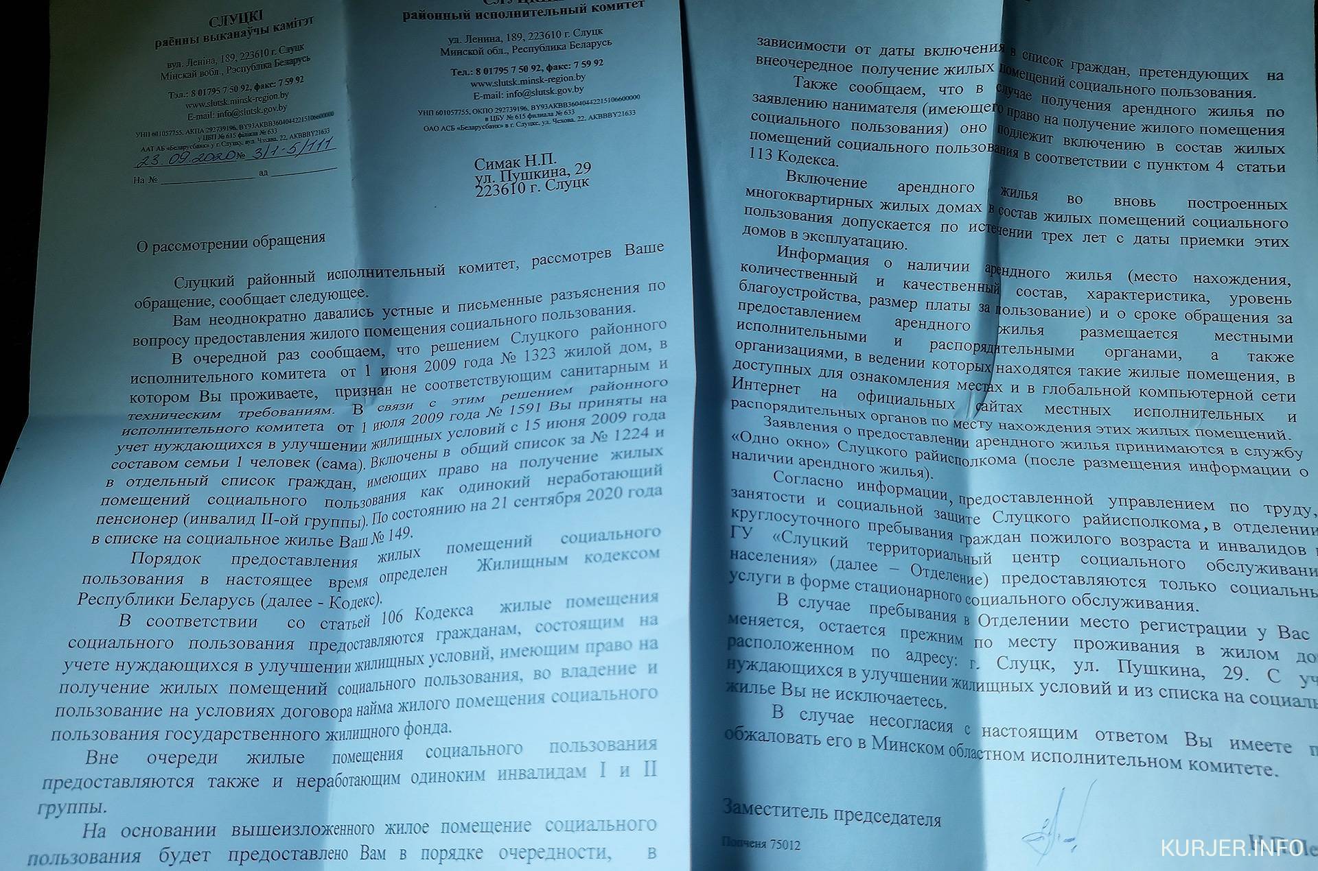 Каждый год я узнаю, как продвигается моя очередь. В 2012-м она была 155, в 2015 году почему-то стала 223, в 2017-м — 165, в 2020-м — 149. В июле этого года я снова звонила в райисполком, сказали, что 129-я, а позвонила вчера — опять 149-я”.