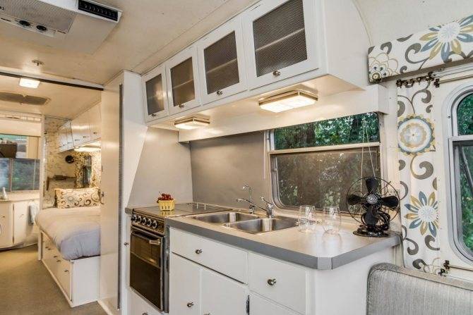В интерьере старого прицепа можно сохранить эстетику 70-х . Планировка, очертание мебели и предметов декора — все говорит о духе того времени.