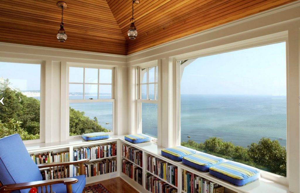 Диван или кресла, комнатные растения, открытые стеллажи или застекленные шкафы для хранения литературы. Эту комнату нужно сделать самым тихим и уютным местом в доме, использовав текстиль, немногочисленные произведения искусства и креативные осветительные приборы.