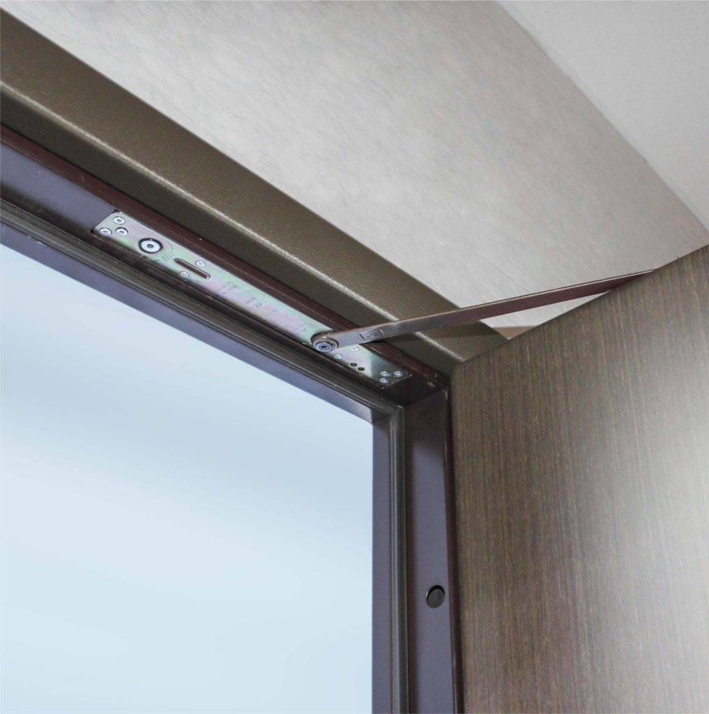 Как только механизм устройства будет закреплен, начинают установку рычажной скользящей тяги. В ее состав входят две половины, соединенные между собой резьбой. Длина рычага регулируется с учетом угла открывания двери на 90 градусов. Если монтаж дверного доводчика осуществлен правильно, дверь закрывается равномерно и бесшумно.