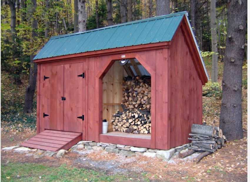 Сарай для дров. Для хранения поленьев необязательно конструировать специальное сооружение. Дрова можно сложить в обычном сарае. Но стоит помнить, что такой вариант удобен при небольшом количестве поленьев, так как место в сарае зачастую занято инструментами, старой мебелью и прочими предметами.