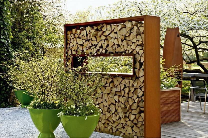 Дровница с окошком может стать перегородкой в зоне отдыхаИсточник lavozdenadie.com
