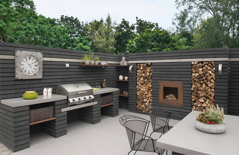 Дровница встроенная в зоне барбекюИсточник pinterest.com