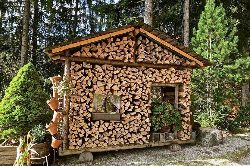 Важно, чтобы они не были глухими, имели щели для движения воздуха, но в то же время защищали строение от плохих погодных условий. Иногда поленницы похожи на беседки. Для большого количества дров выстраивают длинные секционные строения