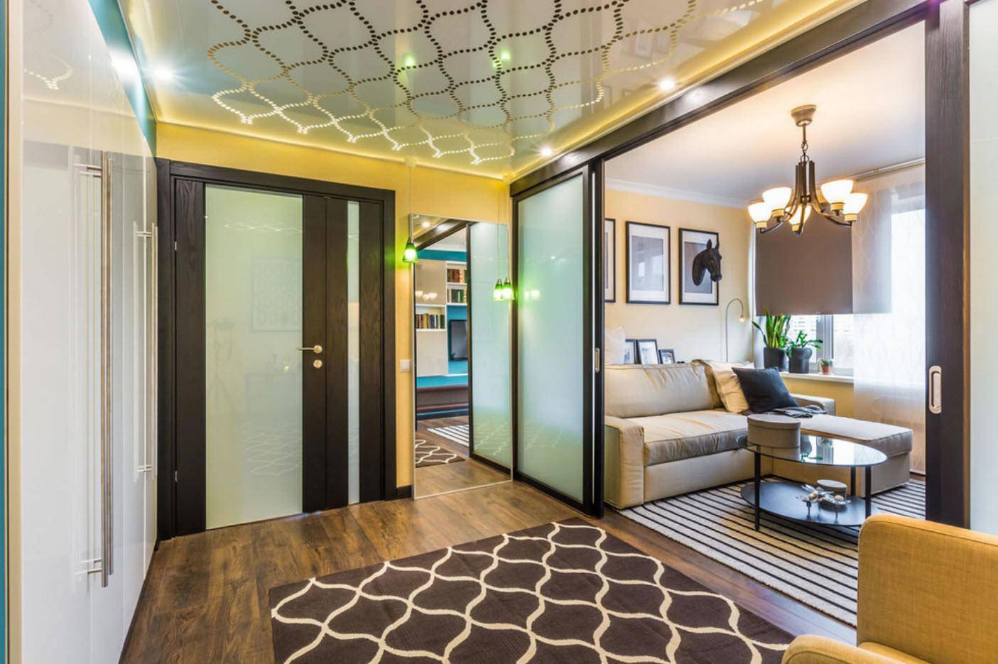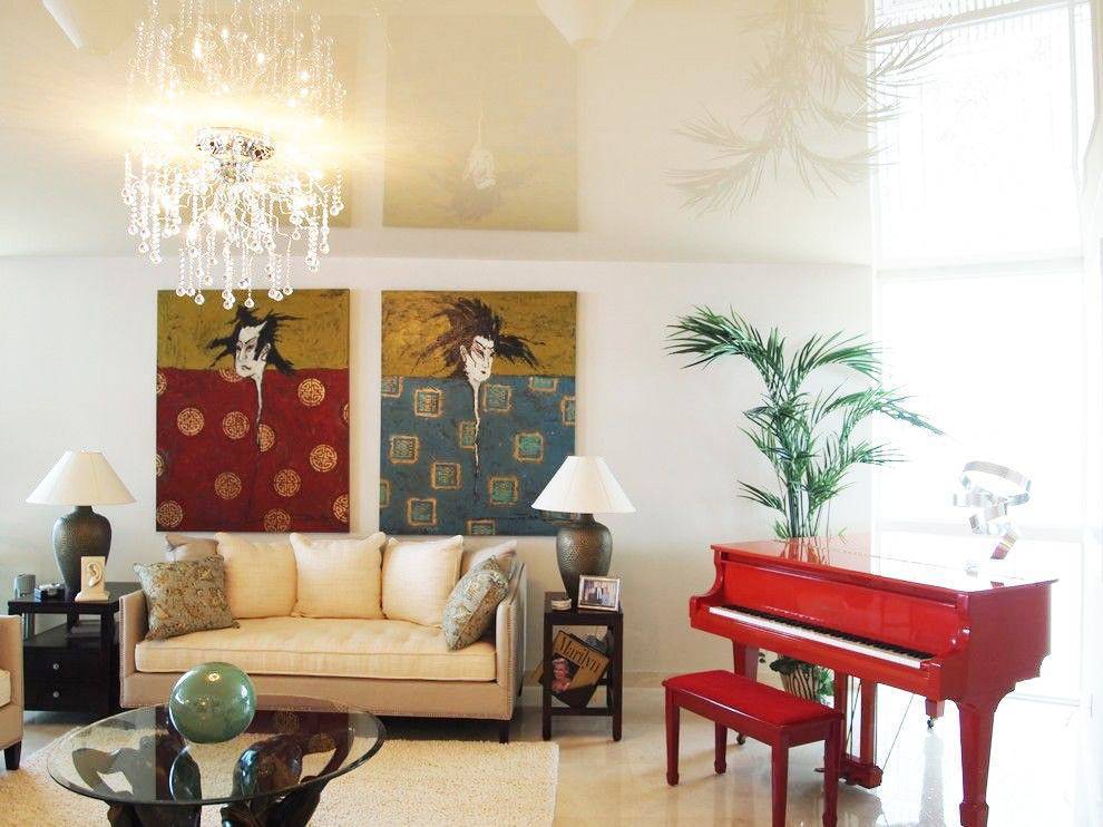 Одноуровневые натяжные потолки для зала: несколько идей