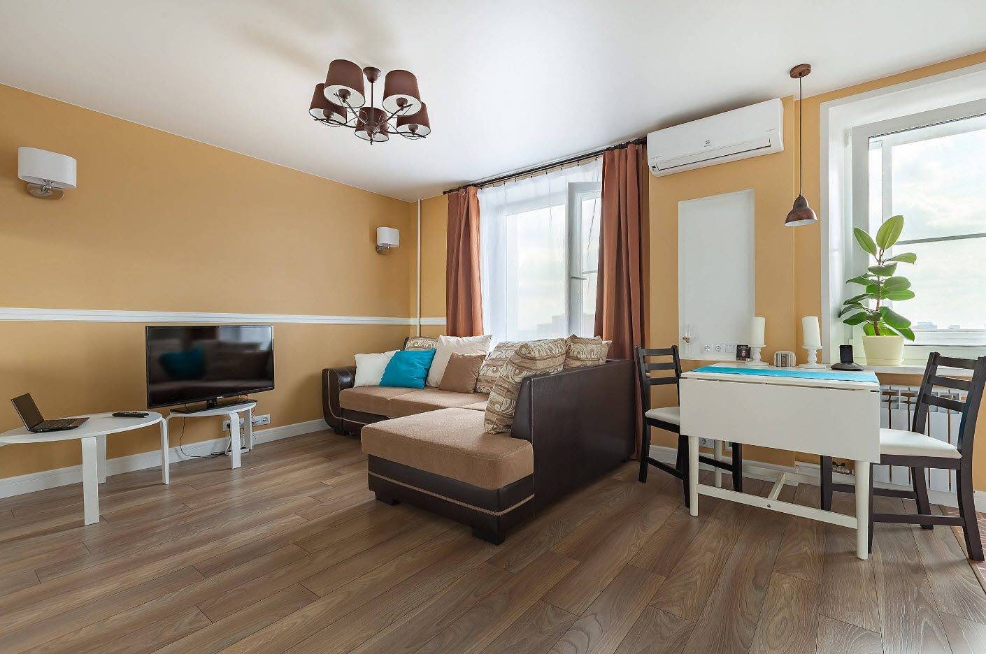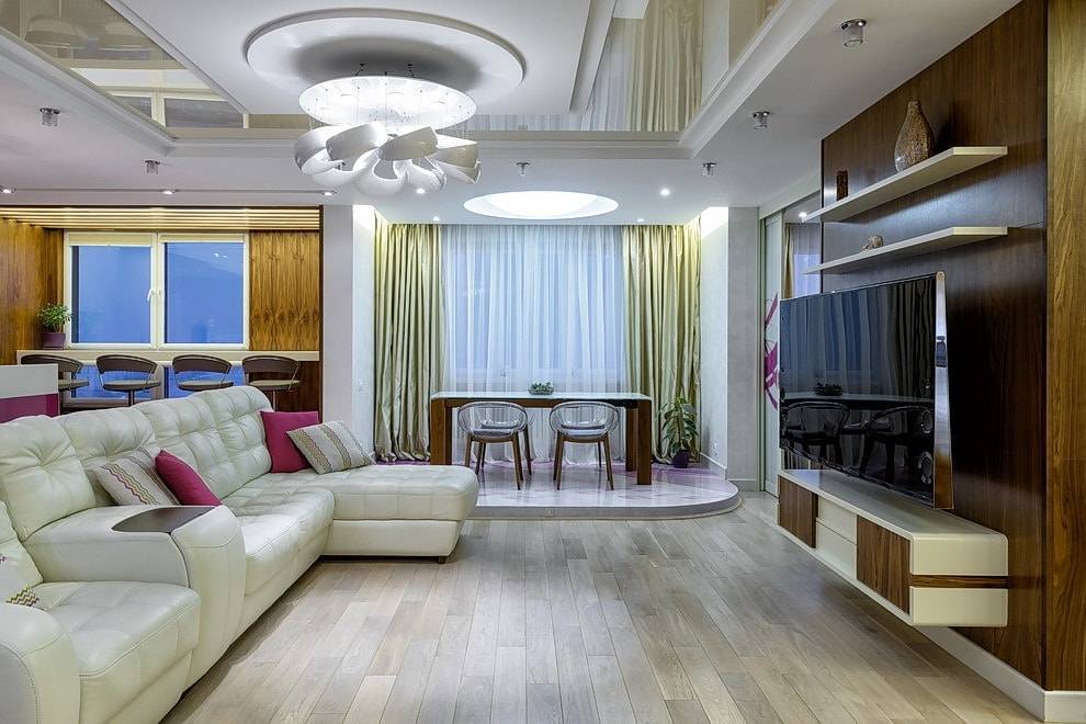 Это очень важно при большой площади помещения и, если в нем сочетается несколько функций. К примеру, гостиная-столовая