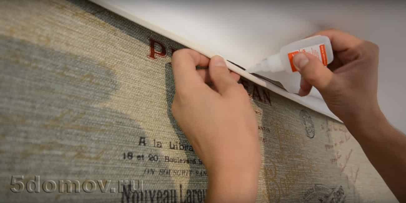 Фиксировать заплату поверх дырки лучше всего прозрачными клеями (например, супер-клеем): высохнув, они сохраняют эластичность, что дает возможности избежать деформации ткани. Также хорошо себя зарекомендовали клеи на резиновой основой. После приклеивания полоску ткани нужно аккуратно разгладить, иначе она в дальнейшем сморщится. При этом следует избегать излишнего нажима, чтобы потолок не деформировался.