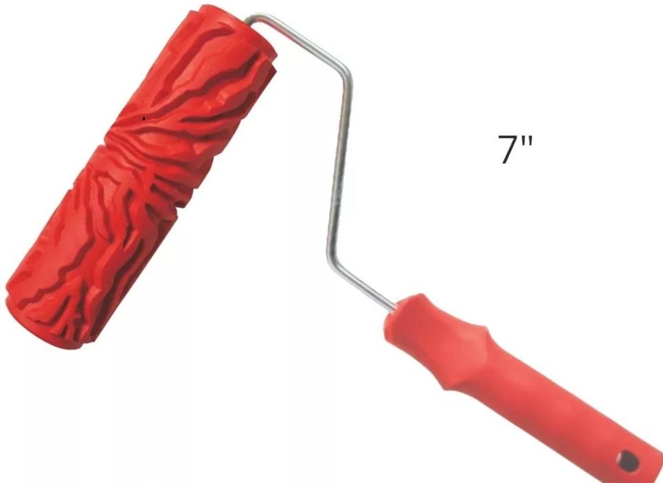 Возможно также изготовление фактурного валика для покраски стен из резиновых изделий. Для этого нужно взять обычный резиновый валик и с помощью копировальной бумаги нанести на него определенный узор. Затем этот узор необходимо вырезать ножом. Можно также использовать обычную резину, но ее толщина должна составлять не менее 5 мм. Нужно позаботиться о том, чтобы рельефный рисунок на изделии составлял единое целое, при этом линии должны быть волнообразными. В завершение лист резины с рельефом фиксируют на цилиндрической заготовке.