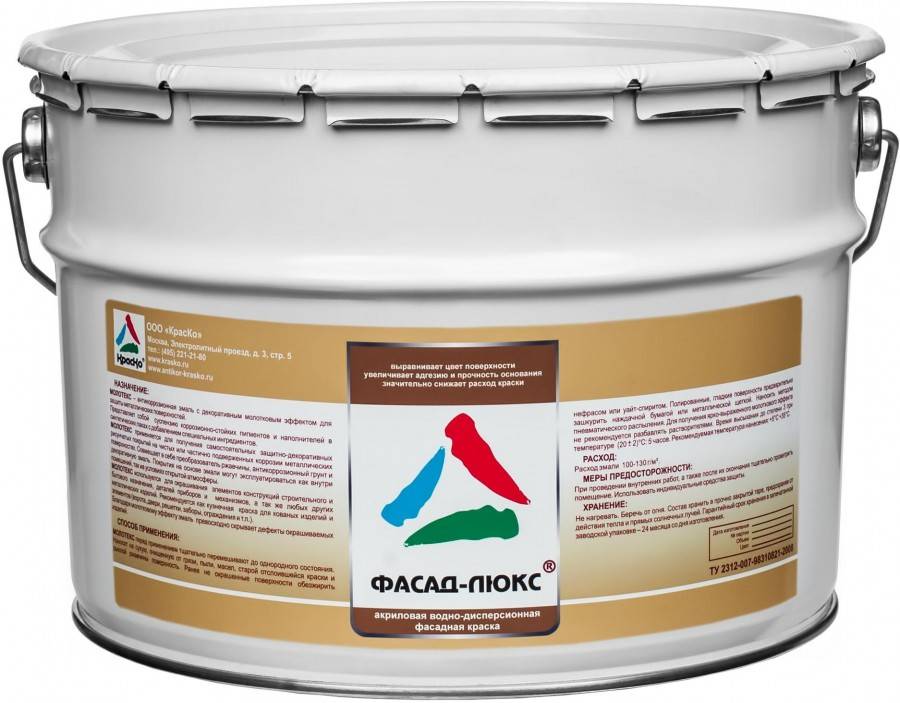 Акриловая разновидность покрытия является самой популярной. Это точное попадание в категорию соответствия цена — качество. Акриловая краска имеет все необходимые характеристики для долгой службы, сохраняет свой внешний вид долгие годы и имеет экономичный расход. Но, как и любой материал также имеет минусы – это плохая паропроницаемость.
