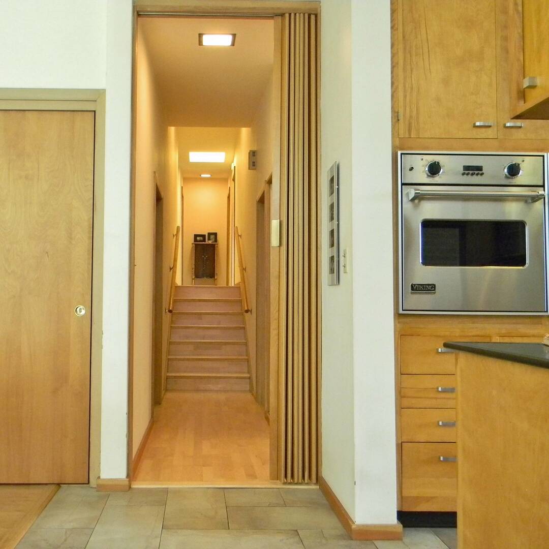 Дверь-гармошка формирует компактную входную зону, однако не обеспечивает полную звукоизоляцию. Фотограф Kimberley Bryan