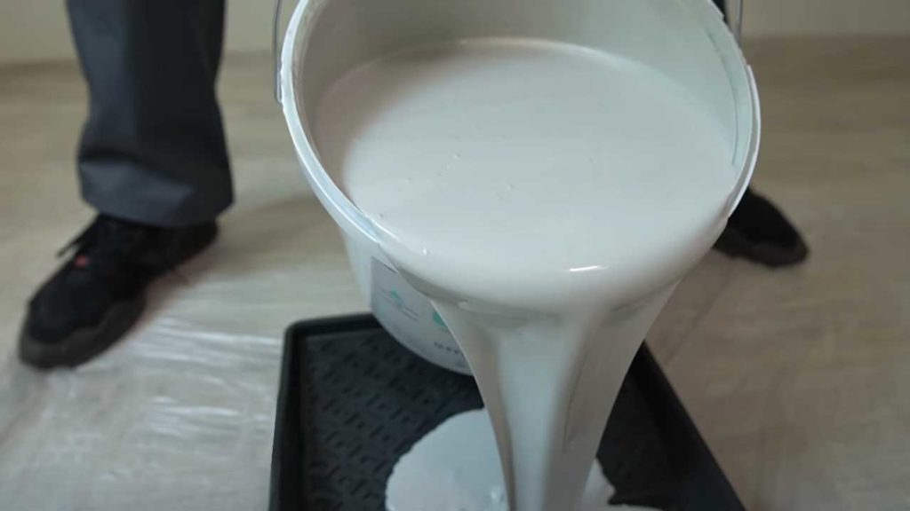 Для покраски понадобится лоток для краски, валик, кисть и, собственно, сама краска. Ее нужно тщательно перемешать, чтобы оттенок был равномерным.