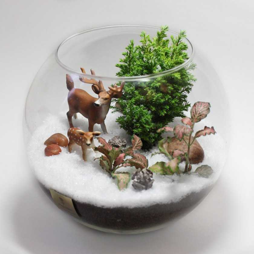 Чудесный флорариум со мхом и декоративными фигурками станет отличным новогодним декором