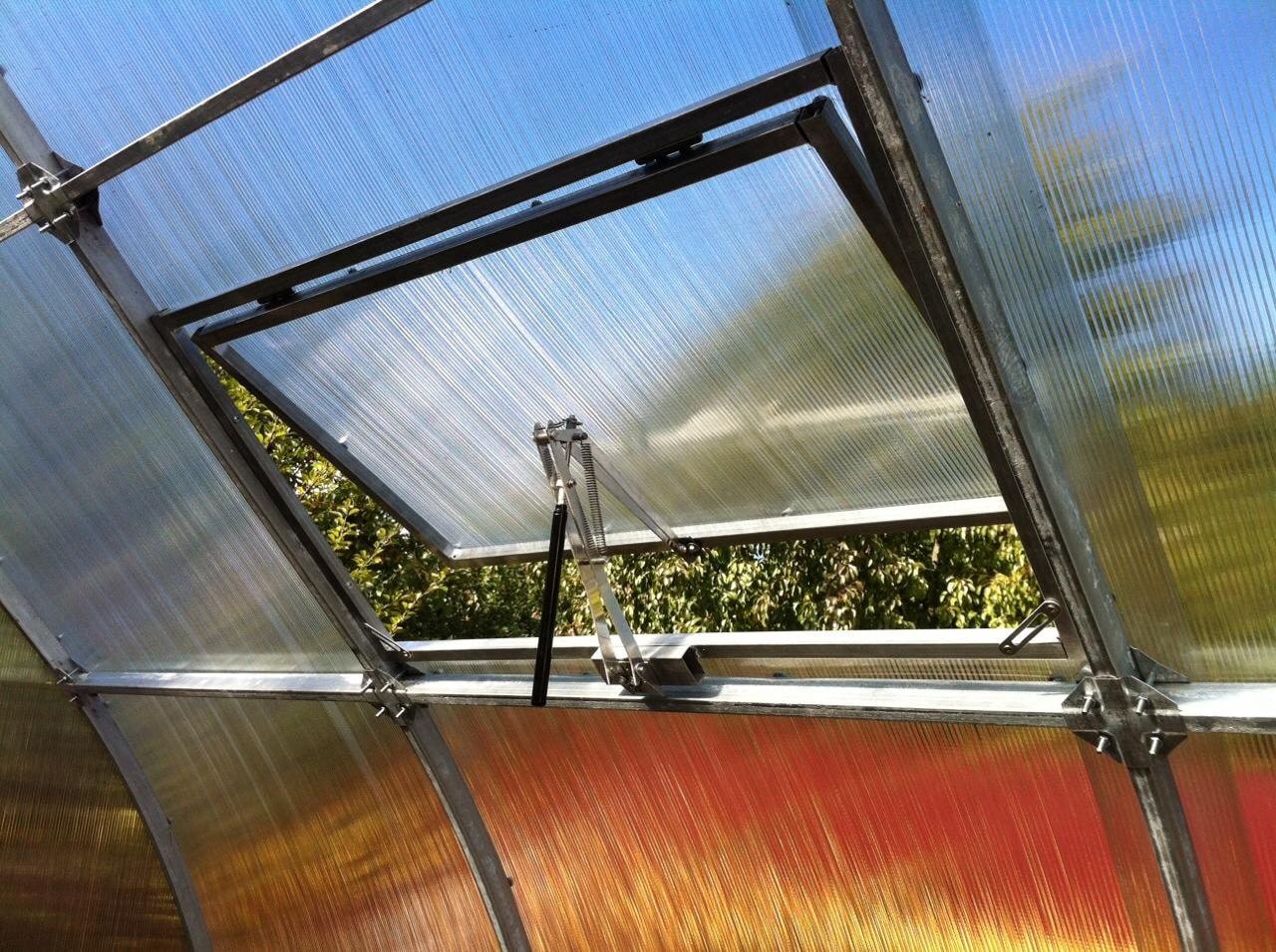 Открывание форточки в парнике может быть самостоятельным или автоматическим. Для этого на данный момент есть специальное оборудование, которое работает на основе гидроцилиндра.