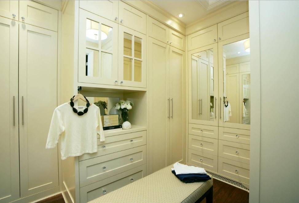 Кстати, именно в гардеробной комнате шкаф не обязательно должен иметь фасады. Очень красиво смотрятся открытые варианты. По мнению дизайнеров, именно такой шкаф стоит выбирать для гардеробной.