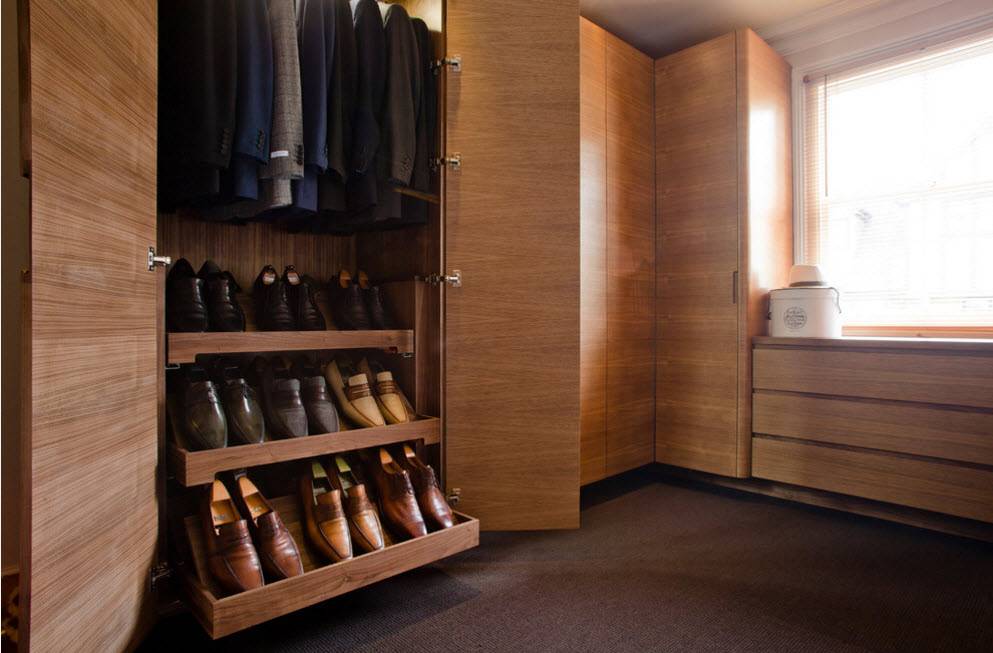 Очень удобны выдвижные системы ящиков и полочек для обуви.