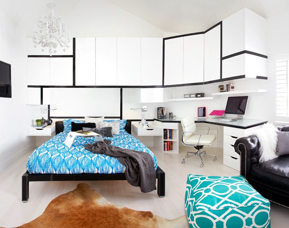 С помощью шкафа-купе в детской комнате можно грамотно разделить ее на уголок для сна и рабочую зону.