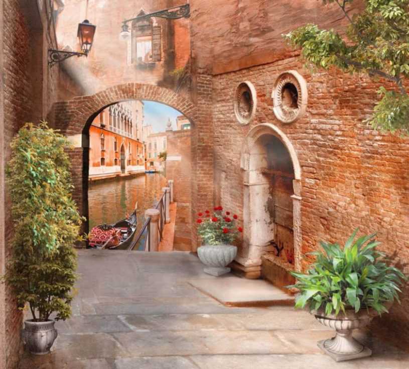- Венецианская штукатурка – полупрозрачность флизелина делает его близким к этой дорогой отделке. Такая основа фотообоев кухне придает богатый вид и на ней великолепно смотрятся портреты.