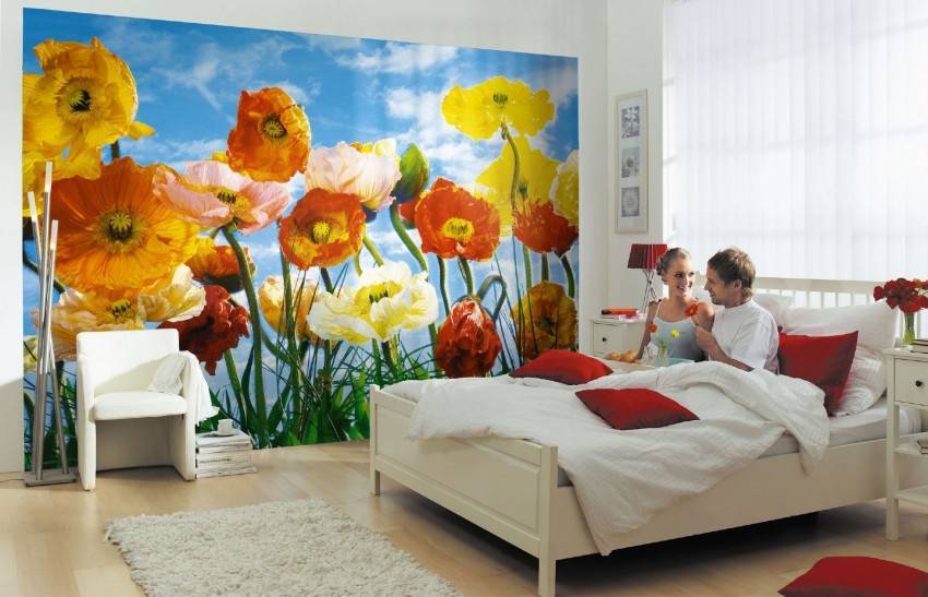 - природные мотивы с пейзажами, а также фотообои с изображением цветов считаются универсальными: в зависимости от того, что именно изображено на рисунке, они подойдут практически для любого направления стиля;