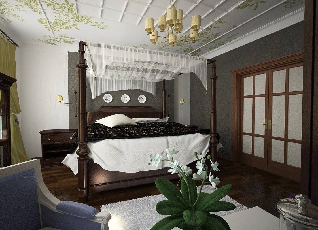 Только ценителям данного стиля будет понятно, почему на кровати нет массивных и тяжелых балдахинов из плотной ткани с большими кистями. Присутствие богатства и роскоши и так будет видно, это скорее всего утонченность, не кричащая о себе. Гораздо приятней будут смотреться просто невесомая гардина или легкий тюль.