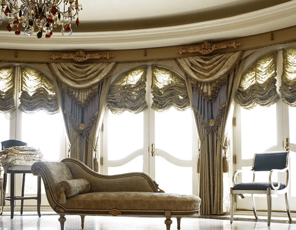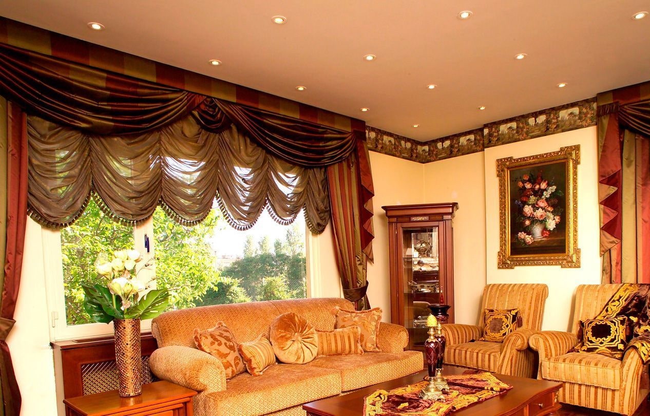 Традиционно в наше время пышные дорогие шторы используются в помещениях, где подчеркивается торжественность — чаще всего в общественных интерьерах. В частных же они применяются в основном, когда речь идет о следовании определенному стилю. В классическом стиле мягкие плавные линии штор считаются наиболее удачными.