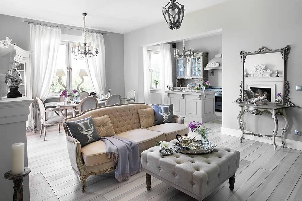Французский стиль также будет хорошо смотреться на бежевом фоне. Вы предпочитаете более холодное решение? используйте серый, который отлично будет сочетаться с элегантной мебелью.