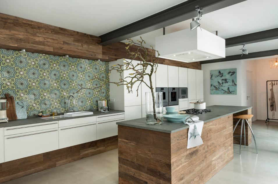 Из прошлого вернулись деревянные панели, закрепленные на стене, глазурованная плитка с узорами, комнатные цветы. Понятно, что все эти элементы получили современное оформление.