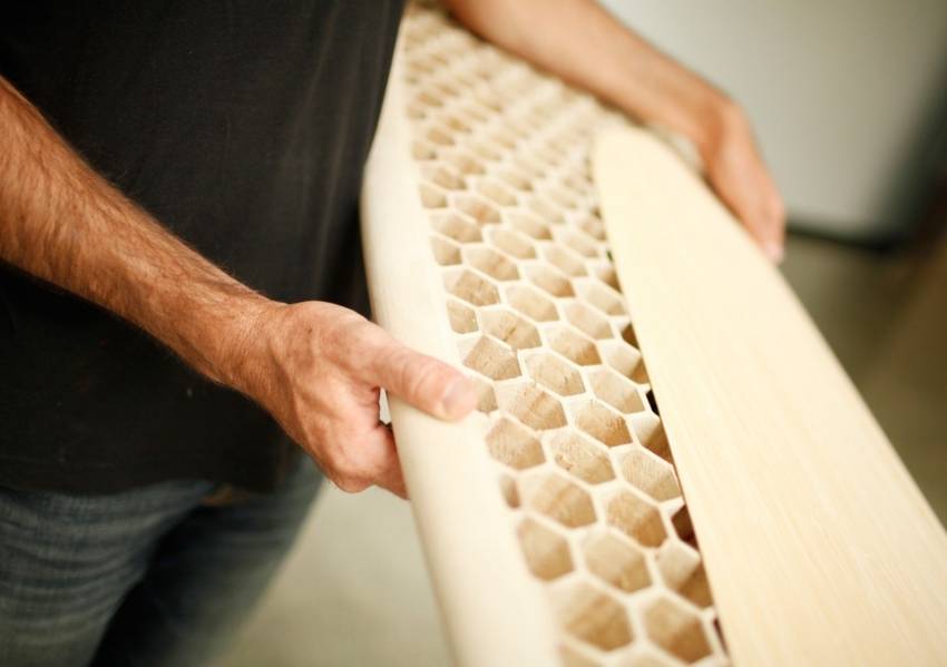 | Столешница состоит из двух пластин. Их обрамляют боковыми ребрами. Требуется делать стыковку на ус. |