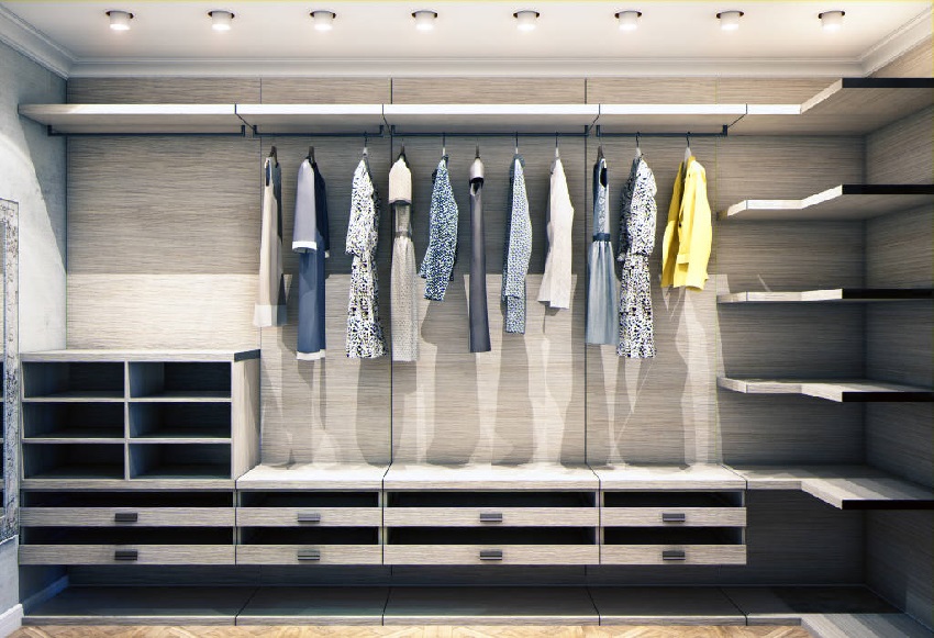 Место для хранения вещей можно организовать в нише, кладовой или сделать гардеробную из одной части отдельной комнаты, отделенной перегородкой. Порядок в шкафу будет зависеть от выбранной вами дизайнерской модели. Рассмотрим самые популярные варианты.