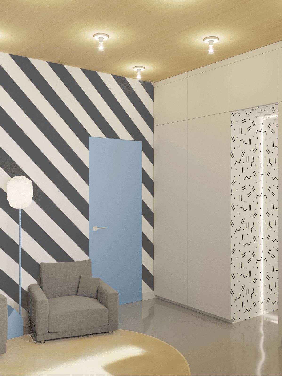 На фото вариант расположения шкафа вокруг двери от дизайнеров Legko.com, подробнее здесь