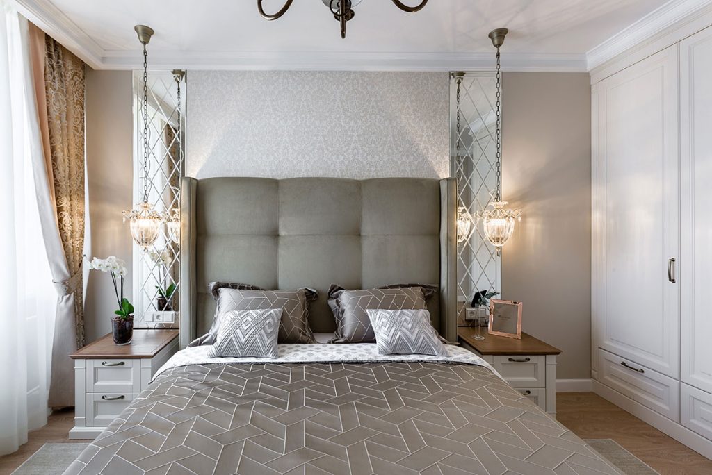 Зеркала на дверях гардероба спальни – функциональное решение