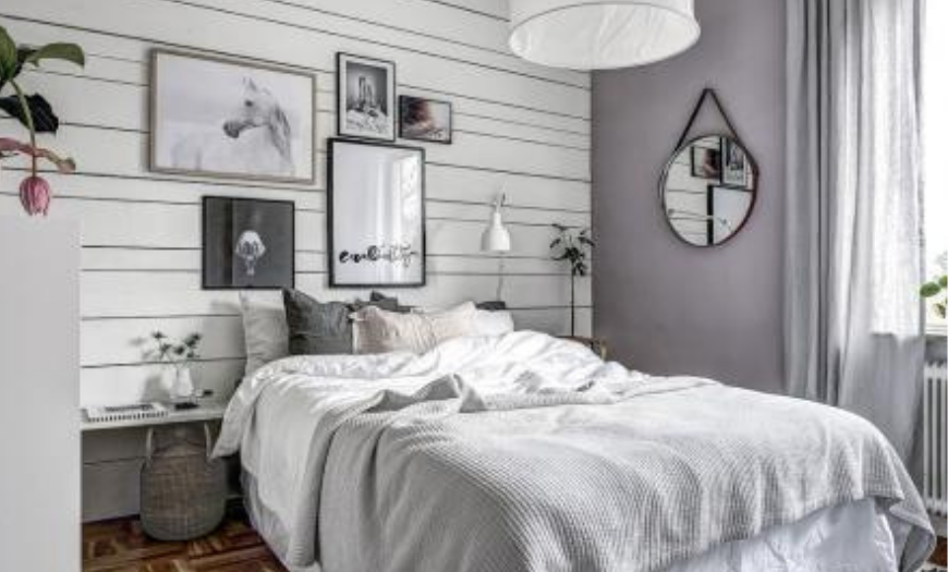 акцентная стена отвлекает внимание от дефицита площади;