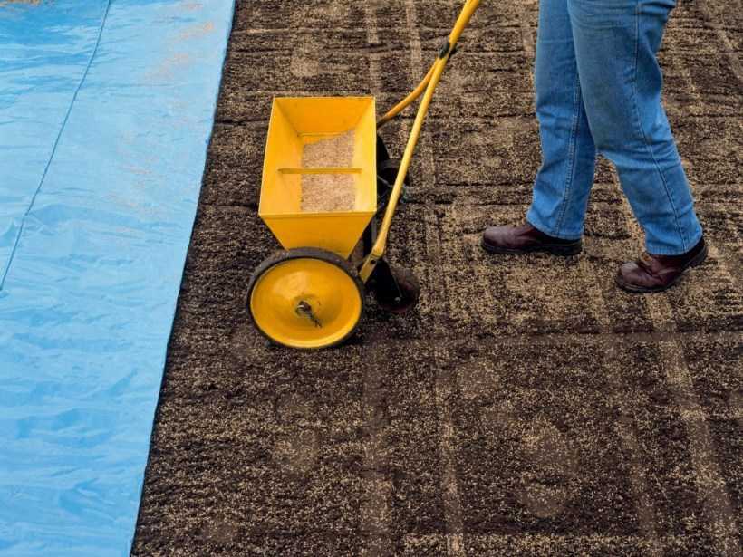 - Засыпьте семена торфяной смесью приблизительно на 1см и пройдитесь по газону уплотнителем;