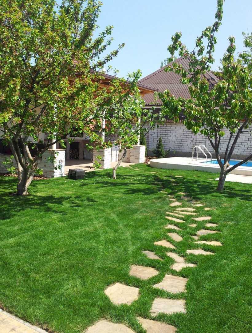 «Ковер» из зелени внешне добавляет жизни общей картине. Современный выбор вариантов газона позволяет выбрать разные виды озеленения.