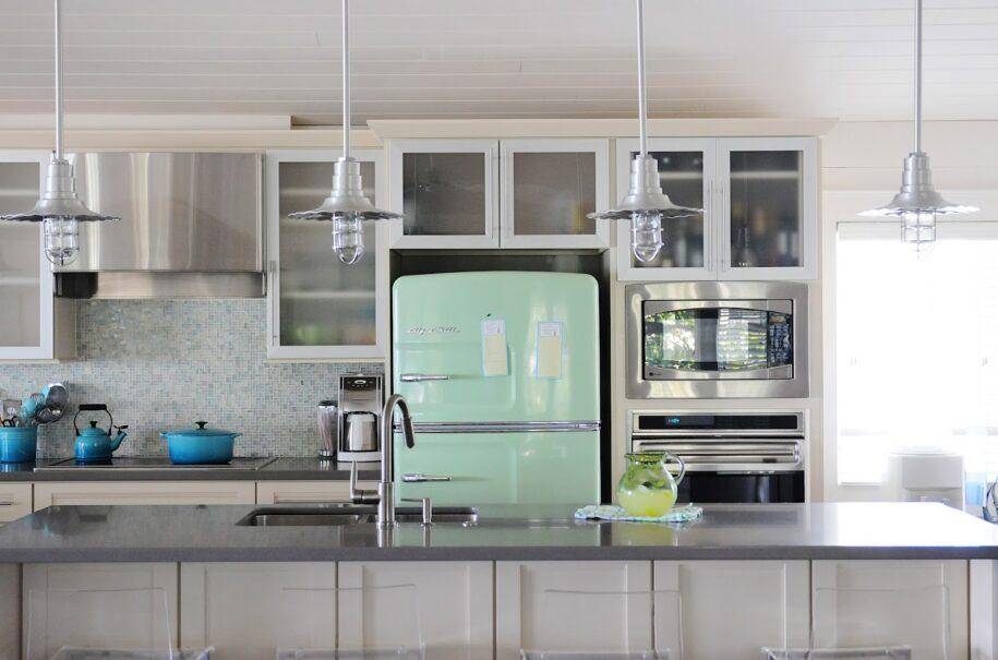 Дизайнеры экспериментируют с разными стилями и делают холодильник ярким акцентом. Интересно выглядит дизайн маленькой кухни с синим холодильником в стиле хай-тек или дизайнерский агрегат в ретро-стиле.
