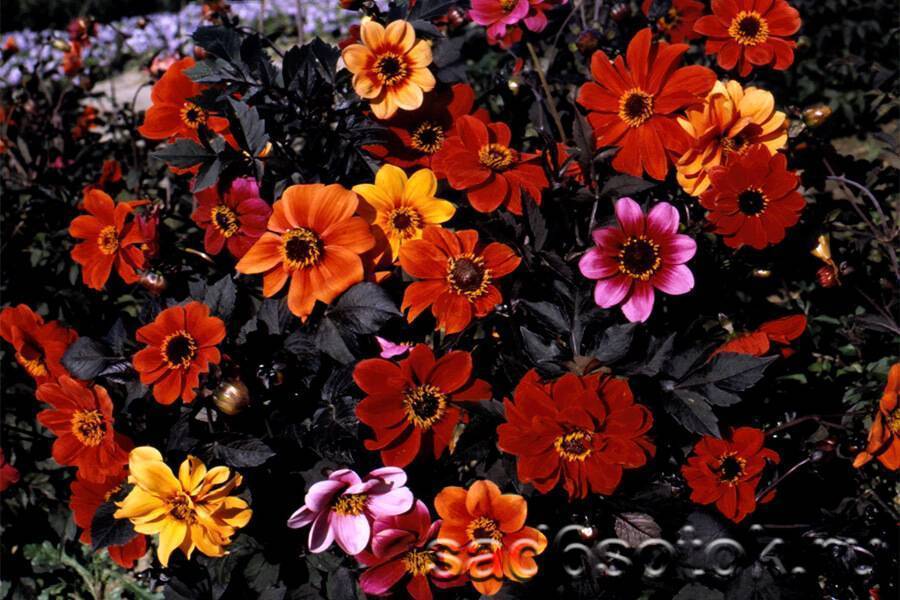 - Фигаро — невысокий однолетний георгин (до 45 см). На кусте формируется много пышных соцветий. Цветовая палитра отличается большим разнообразием.