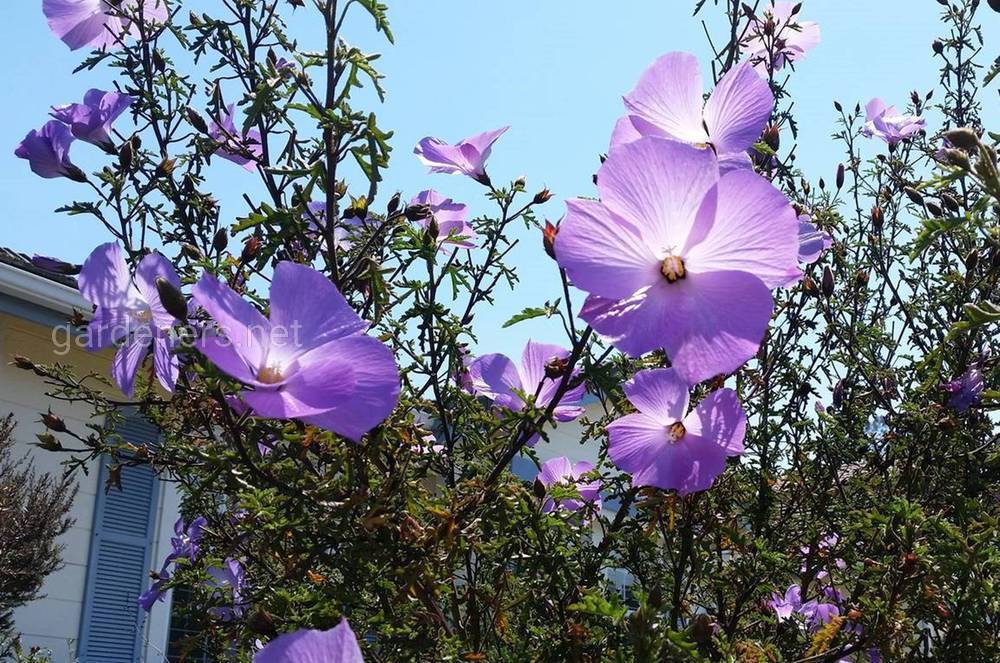 Еще один причудливый австралийский сорт прозвали гибискусом-сиренью за характерный окрас бутонов. Куст густо ветвится и пышно укрыт яркими зелеными листьями с ворсистыми сегментированными пластинами. Интересно смотрится форма бутонов, каждый следующий лепесток которого прикрывает предыдущий.
