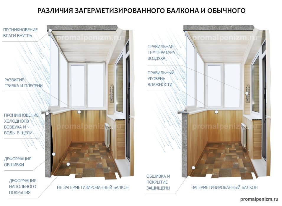 Рис. 8. Различия загерметизированного и обычного балконов.