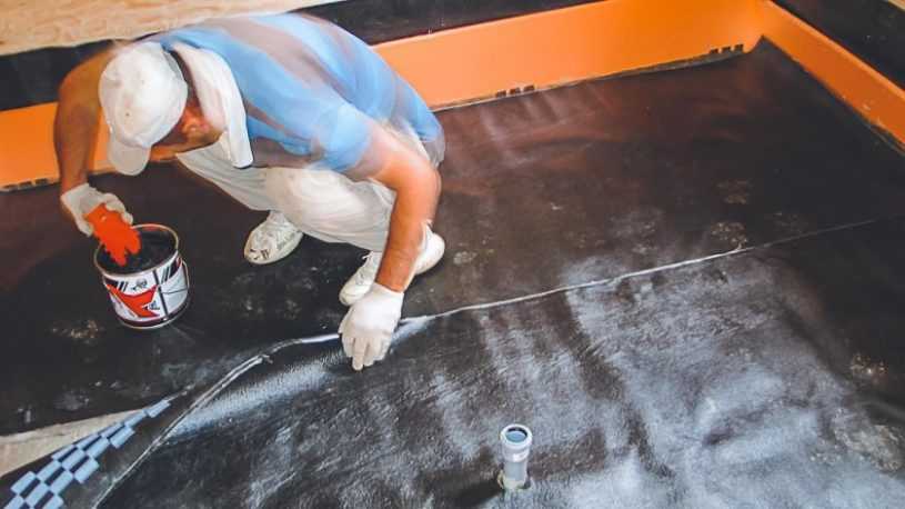 Для гидроизоляции ванной комнаты под плитку используют обмазочные, проникающие материалы, оклеечные и составы на основе резины.