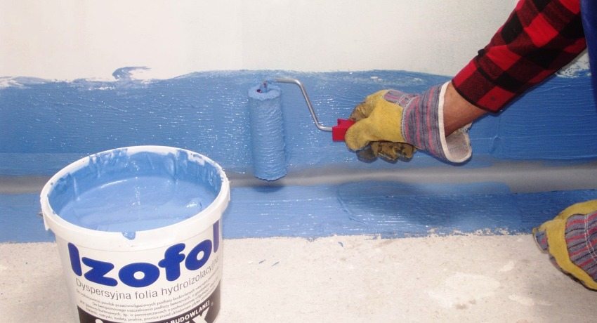 Прежде чем приступить к гидроизоляции нужно обязательно обработать все поверхности “грунтовкой”, особенно в тех частях стены, где будет нанесена мастика.