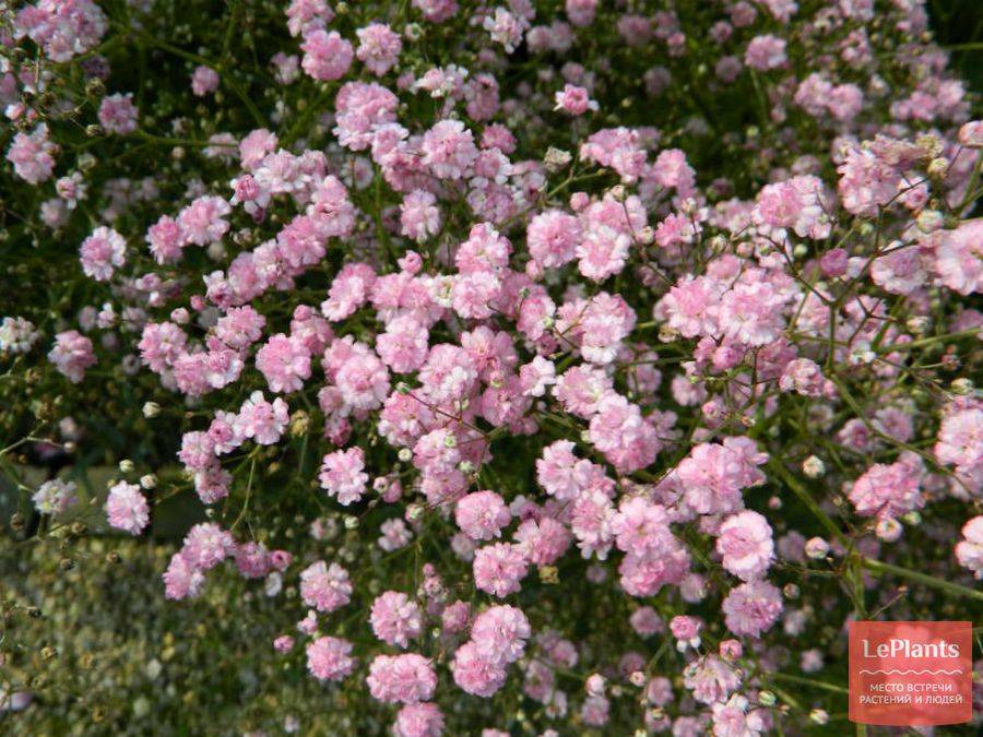 - Метельчатая гипсофила «Фламинго» Flamingo – цветет крупными, махровыми, розовыми цветами с июня по август. Достигает высоты 120 см.