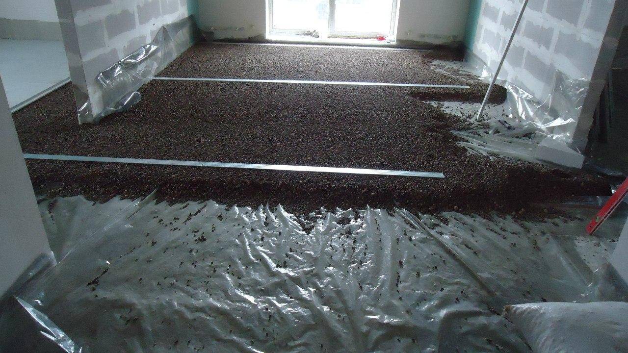 - Подсыпка. Сыпучие ингредиенты помогают выровнять поверхность пола. Используют перлит с песком или более дешевый керамзит.