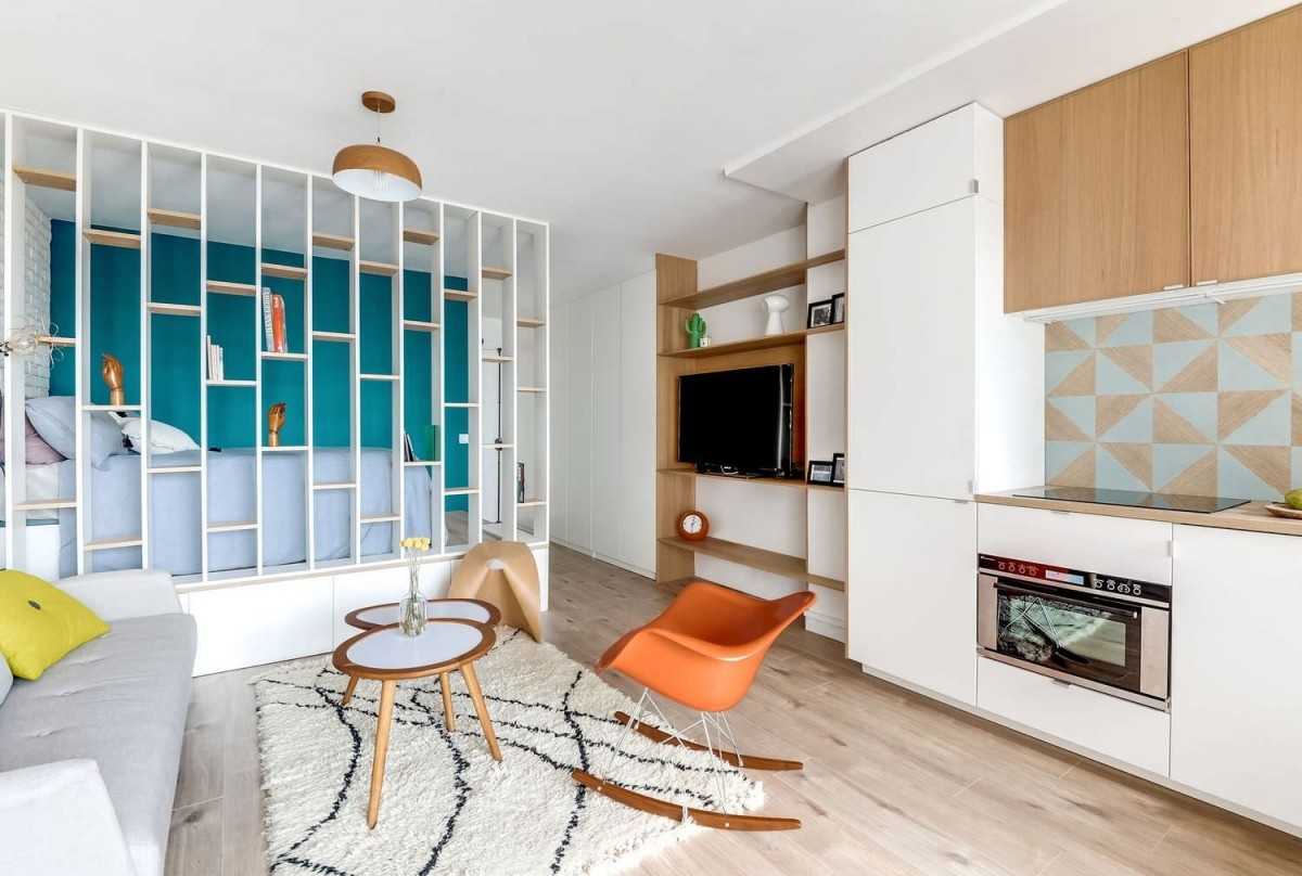 Современная квартира-студия предполагает комбинирование обеденной и гостевой зон. Распределить пространство удобно с помощью мебели. Комната может быть вытянутой или квадратной. От этого зависит расположение кухонного гарнитура, дивана и стола.